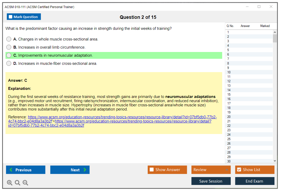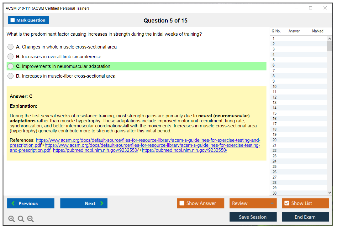 It was never so easy to make your way to the world's most worthwhile professional qualification as it has become now! DumpsQueen's ACSM 010-111 ACSM Certified Personal Trainer training test questions answers are the most suitable choice to ensure your success in just one go. You can surely answer all exam questions by doing our ACSM 010-111 exam frequently. Moreover grinding your skills, practice mock tests using our ACSM 010-111 Exam Questions Testing Engine software and master your fear of failing the exam. Our ACSM 010-111 Exam Questions are the most accurate, reliable and the best effective study material that will determine the best option for your time and money.