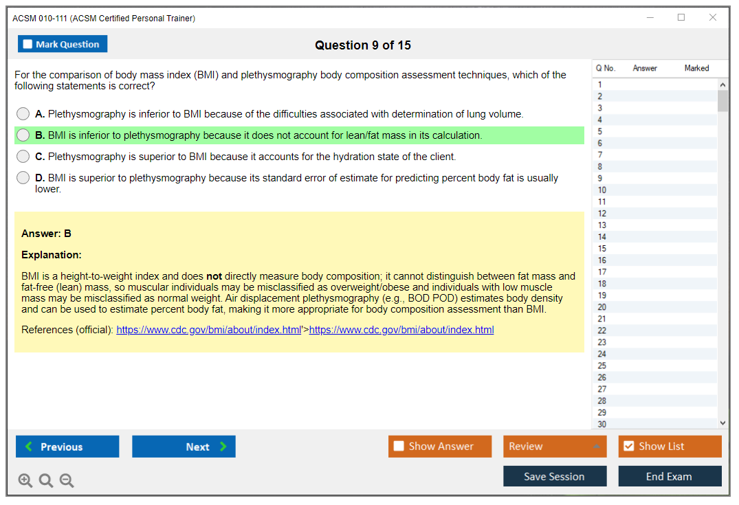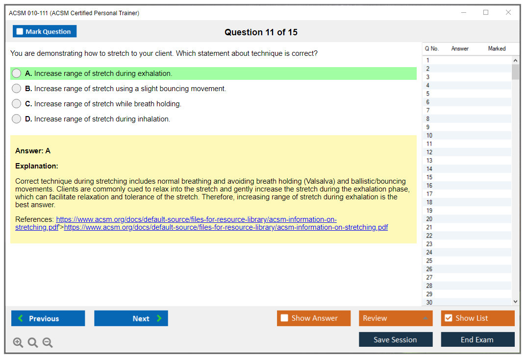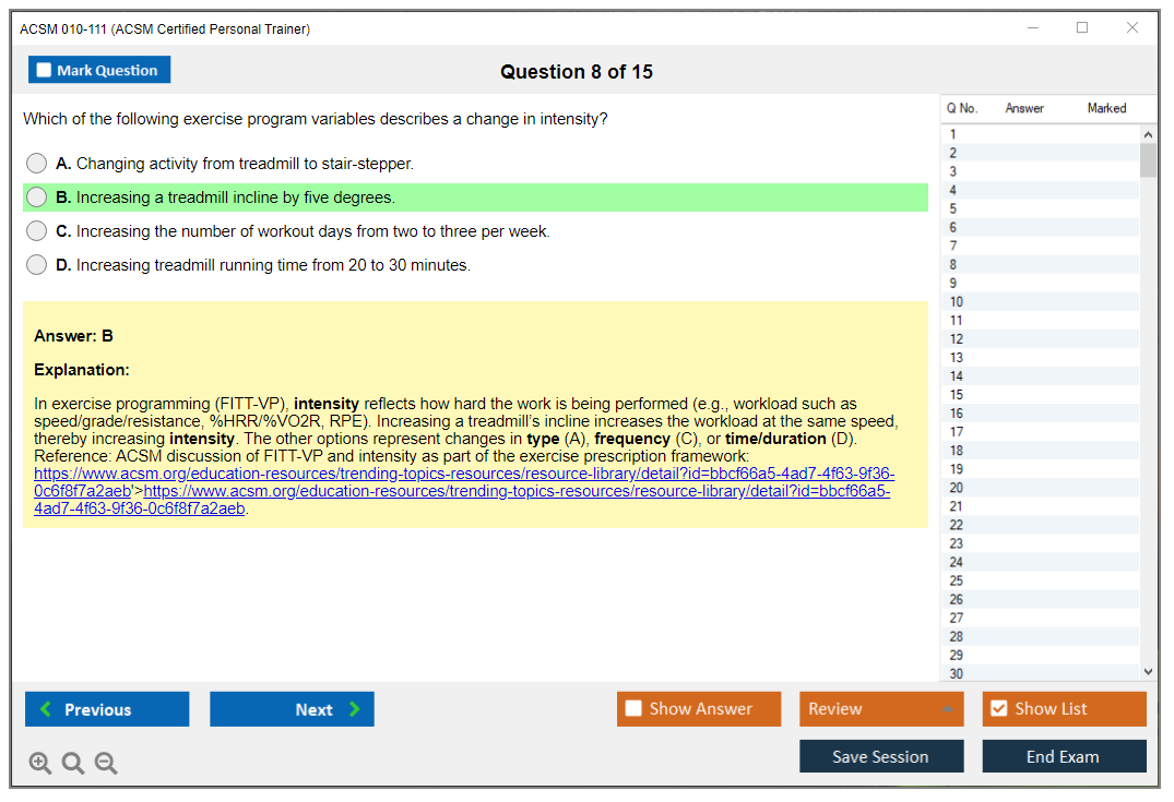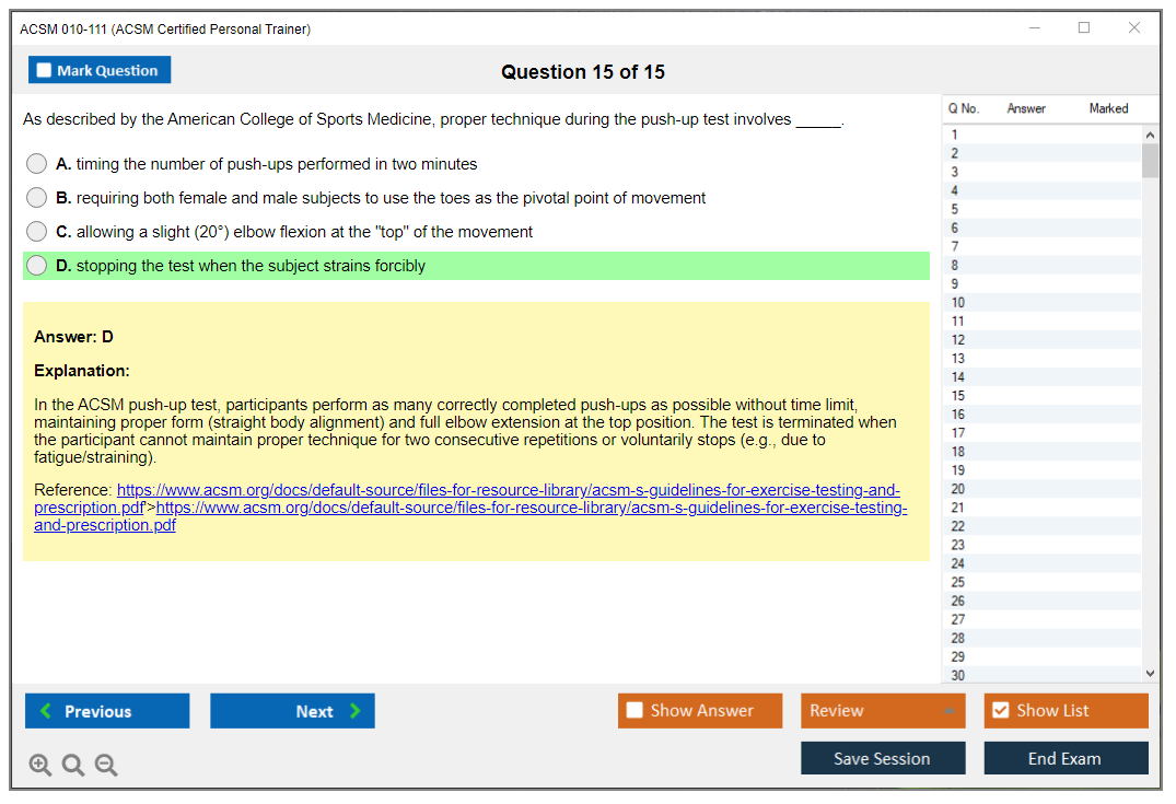 It's now easy as walking in a park! Only use on DumpsQueen's easy 010-111 ACSM Certified Personal Trainer Questions Answers that can provide you first-time success with a 100% money-back guarantee! Thousands of IT professionals have already used these to the point 010-111 Q&As and have achieved their dream certification in the first attempt.