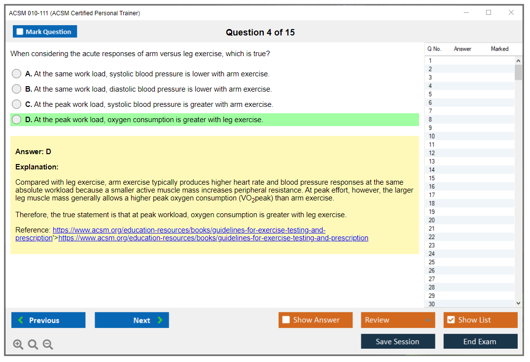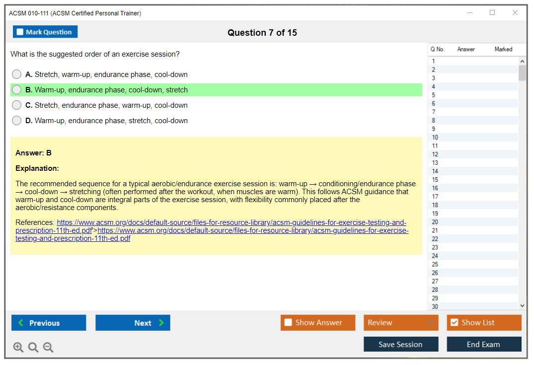 DumpsQueen's 010-111 ACSM Certified Personal Trainer Exam Questions are fairly effective. They concentrate entirely on the most important elements of your exam and provide you with the most efficient feasible info in an interactive and effortless to understand language. Consider boosting up your career with this tested and also the most authentic exam passing formula. 010-111 Exam Questions are unique and a treat for every aspired IT professional who wants to try a 010-111 exam despite their time limitations. There is a strong chance that most of these questions you will get in your real 010-111 exam test.