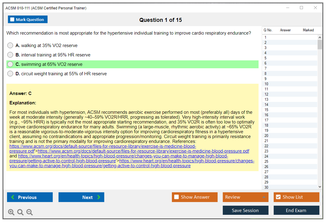 To review the content quality and format, free 010-111 ACSM Certified Personal Trainer Exam Questions demo are available on our website to be downloaded. You can examine these top 010-111 Exam Questions with any of the available sources with you.