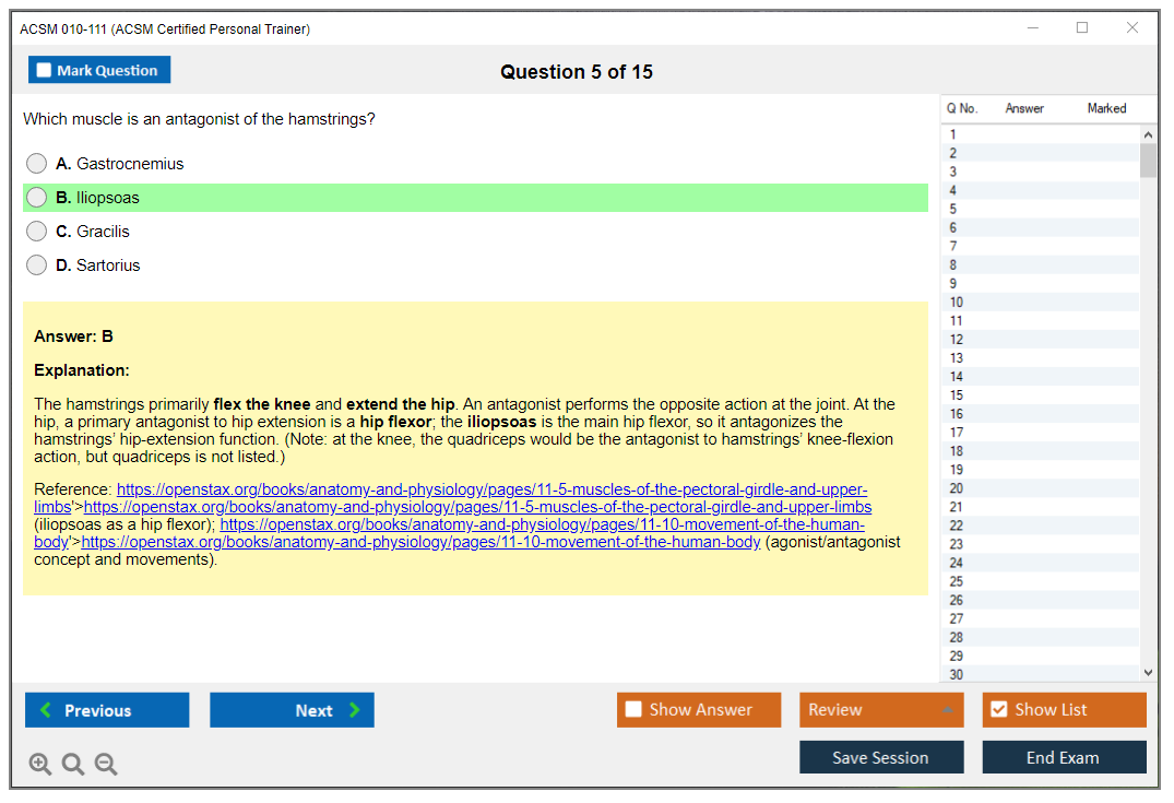 Exam Name: ACSM Certified Personal Trainer