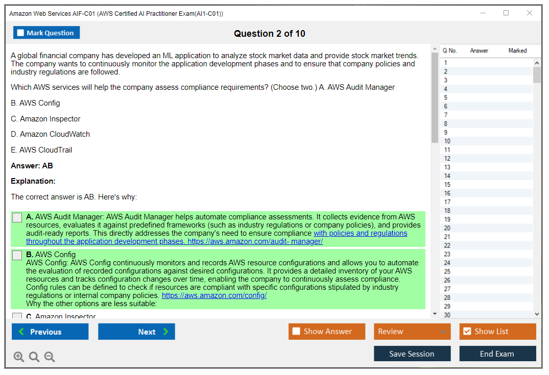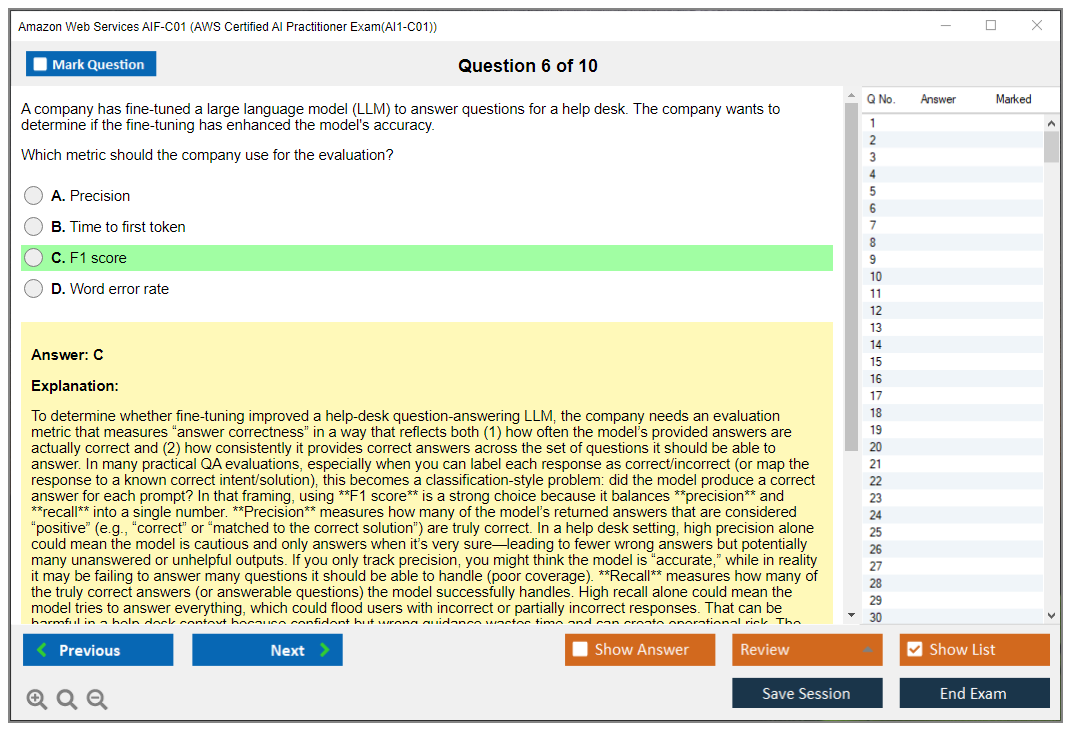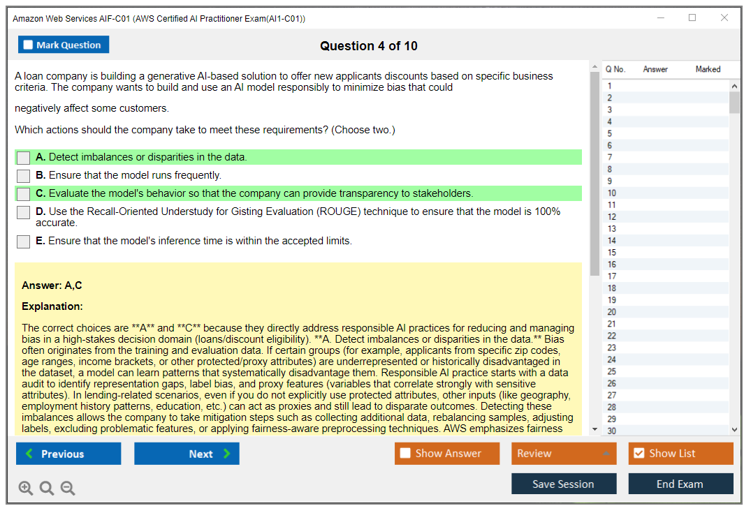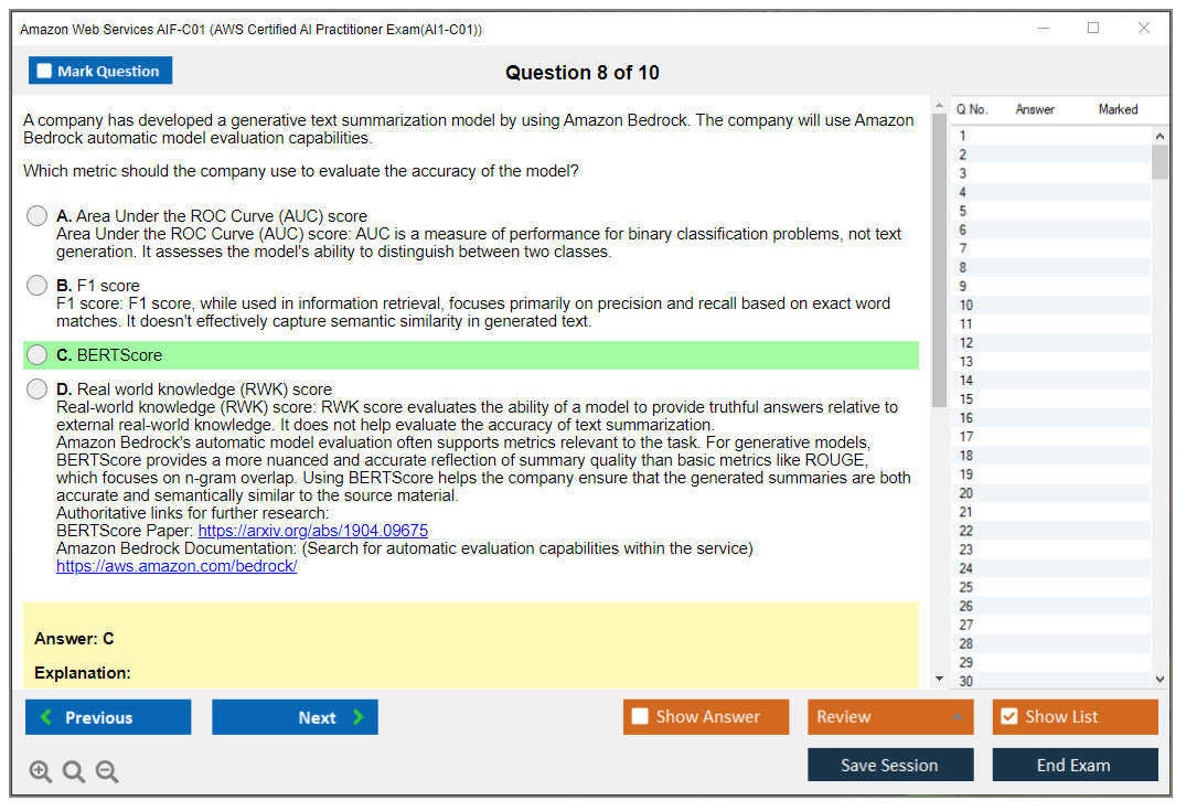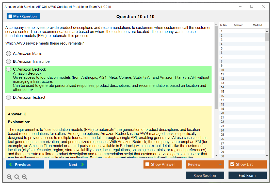 - Correct AIF-C01 Answers verified by Amazon Web Services Experts
