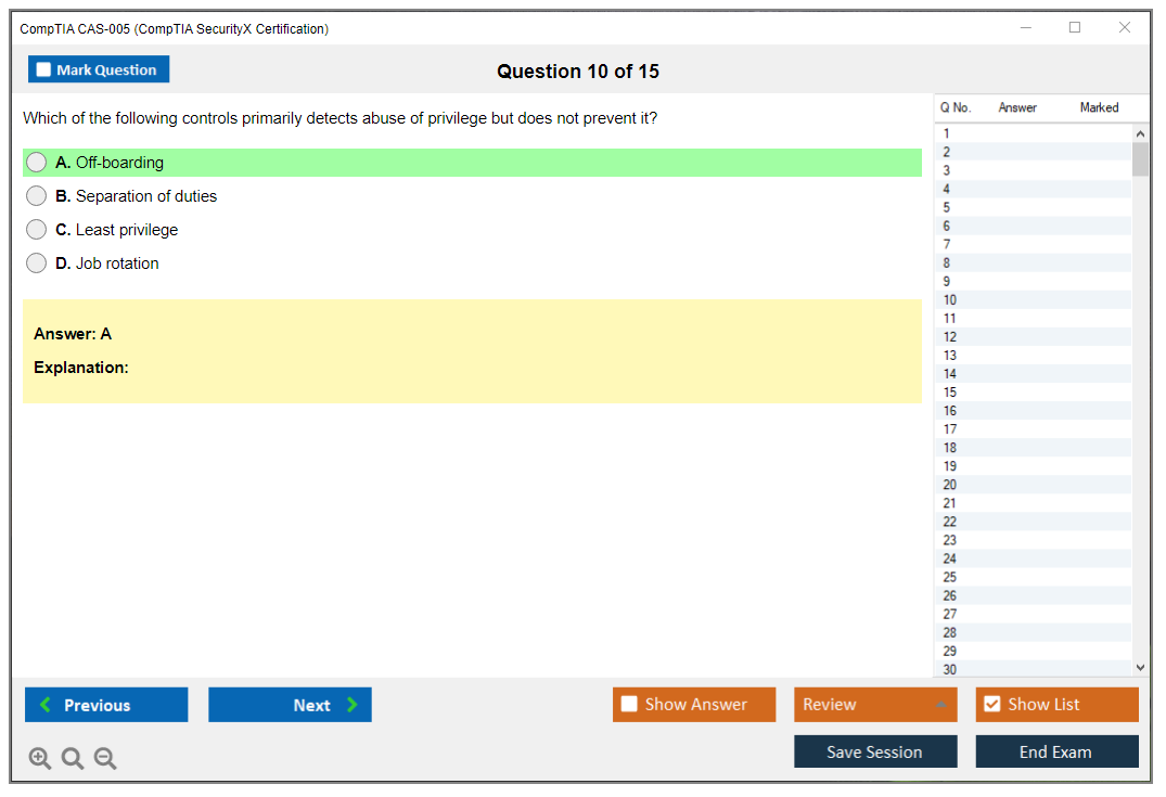 Our CAS-005 Testing Engine will Save your CAS-005 Exam Score so you can Review it later to improve your results.