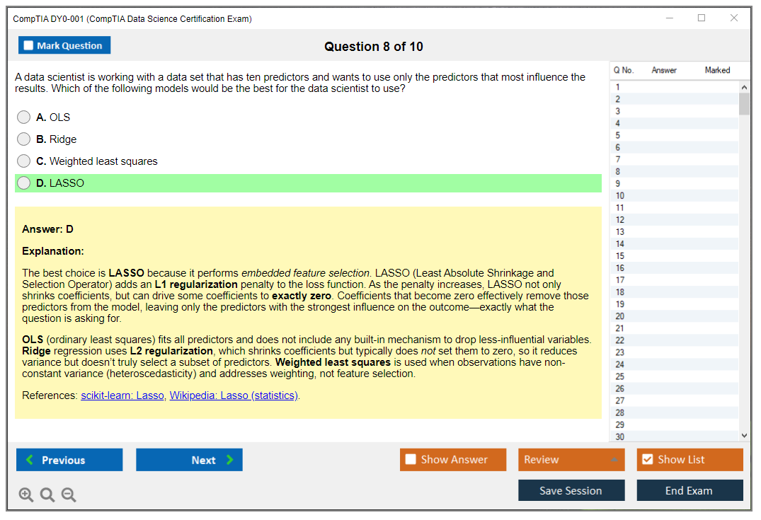 DY0-001: CompTIA Data Science Certification Exam Study Material and Test Engine