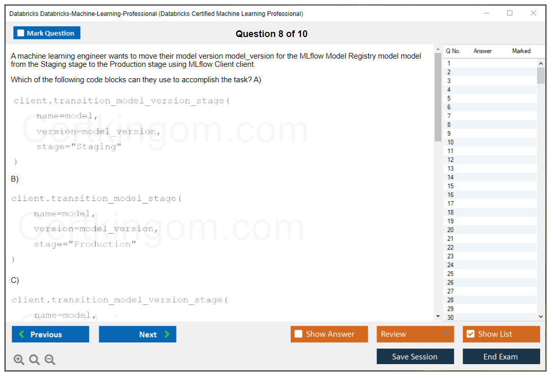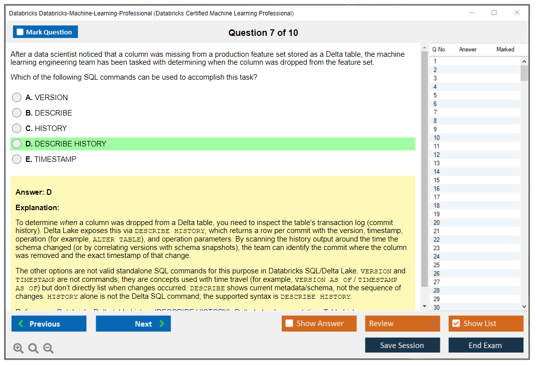 Our Databricks-Machine-Learning-Professional Testing Engine will Save your Databricks-Machine-Learning-Professional Exam Score so you can Review it later to improve your results.
