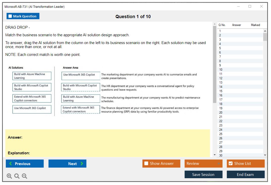 Both AB-731 PDF and Testing Engine have all the Real Questions including Multiple Choice, Simulation and Drag Drop Questions.