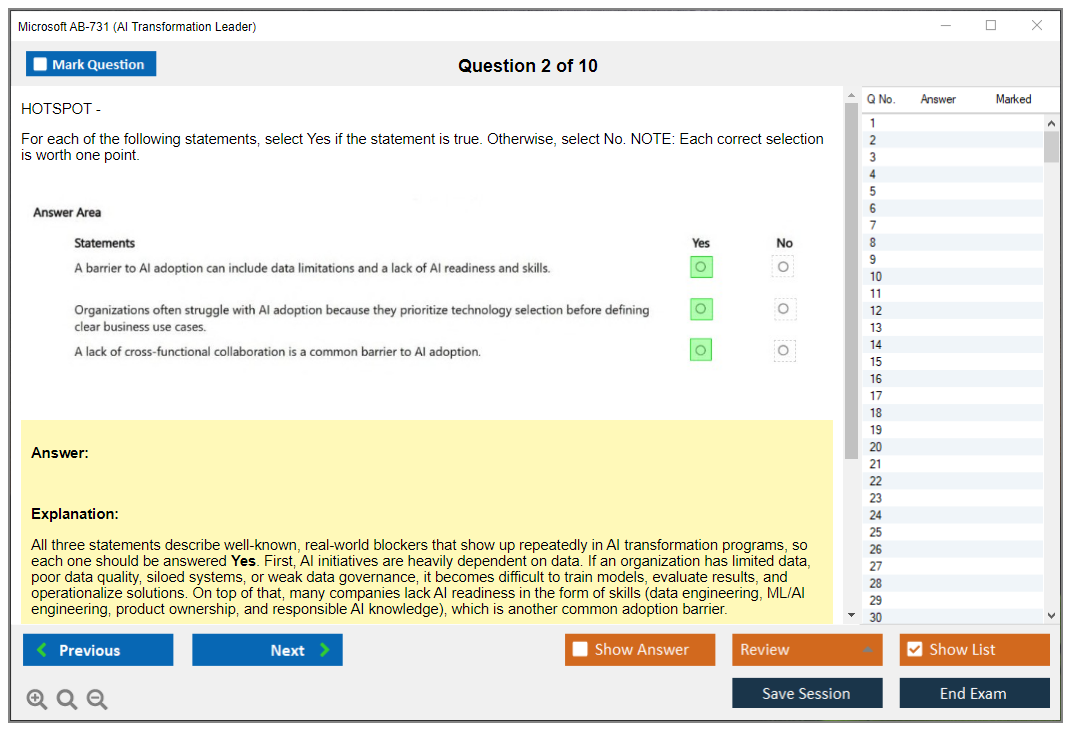 To review the content quality and format, free AB-731 AI Transformation Leader Exam Questions demo are available on our website to be downloaded. You can examine these top AB-731 Exam Questions with any of the available sources with you.