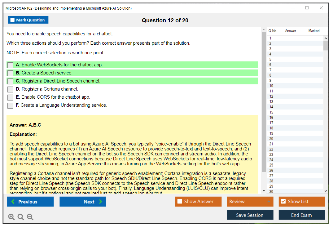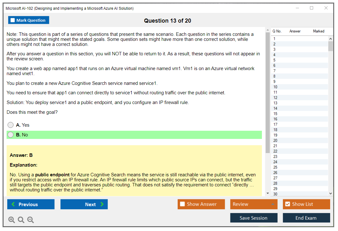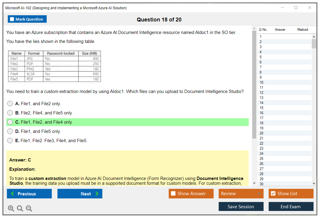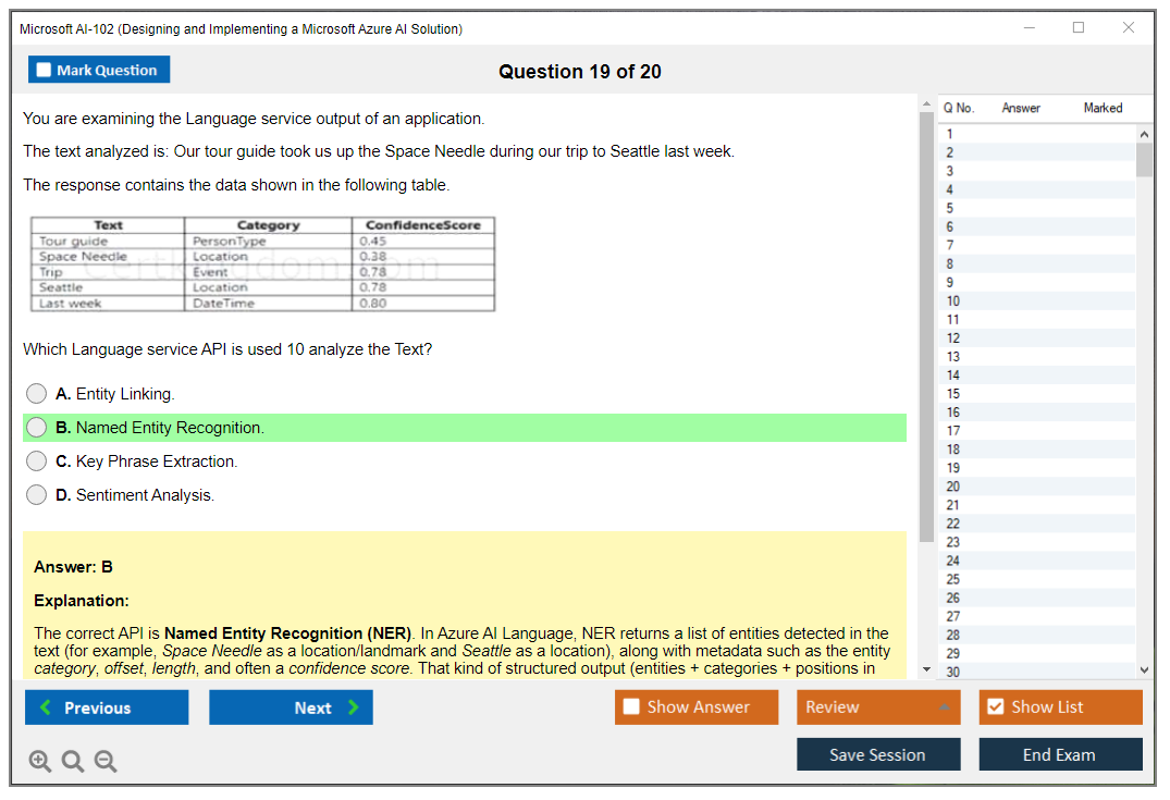 Our AI-102 Testing Engine will Save your AI-102 Exam Score so you can Review it later to improve your results.