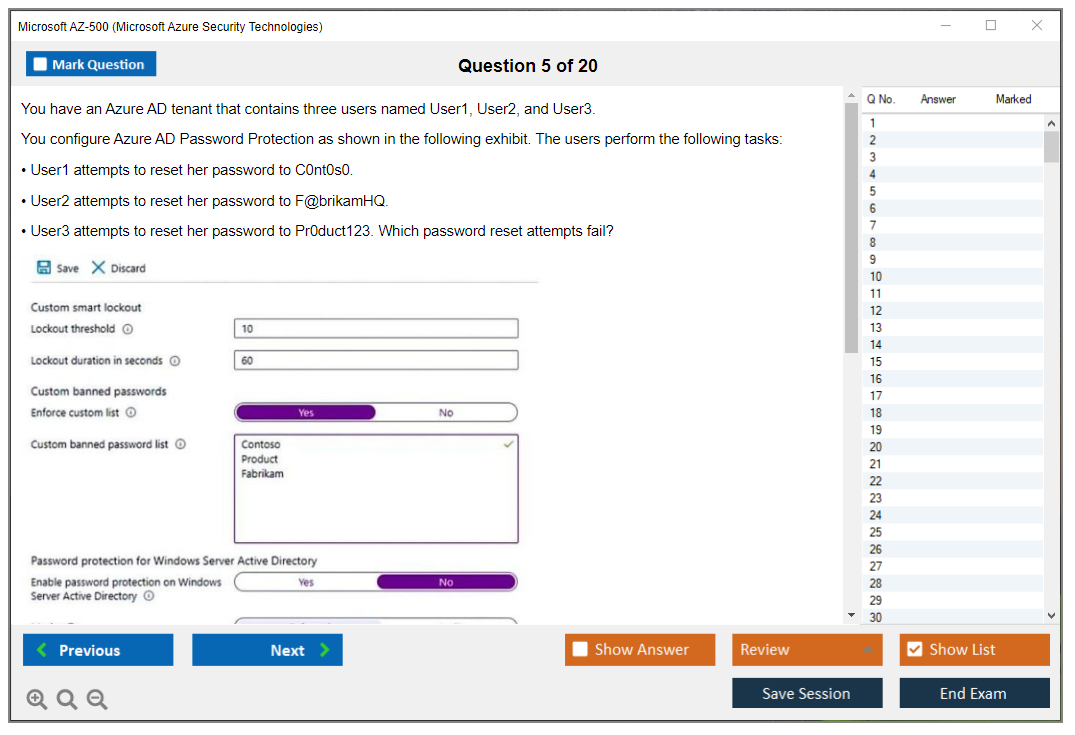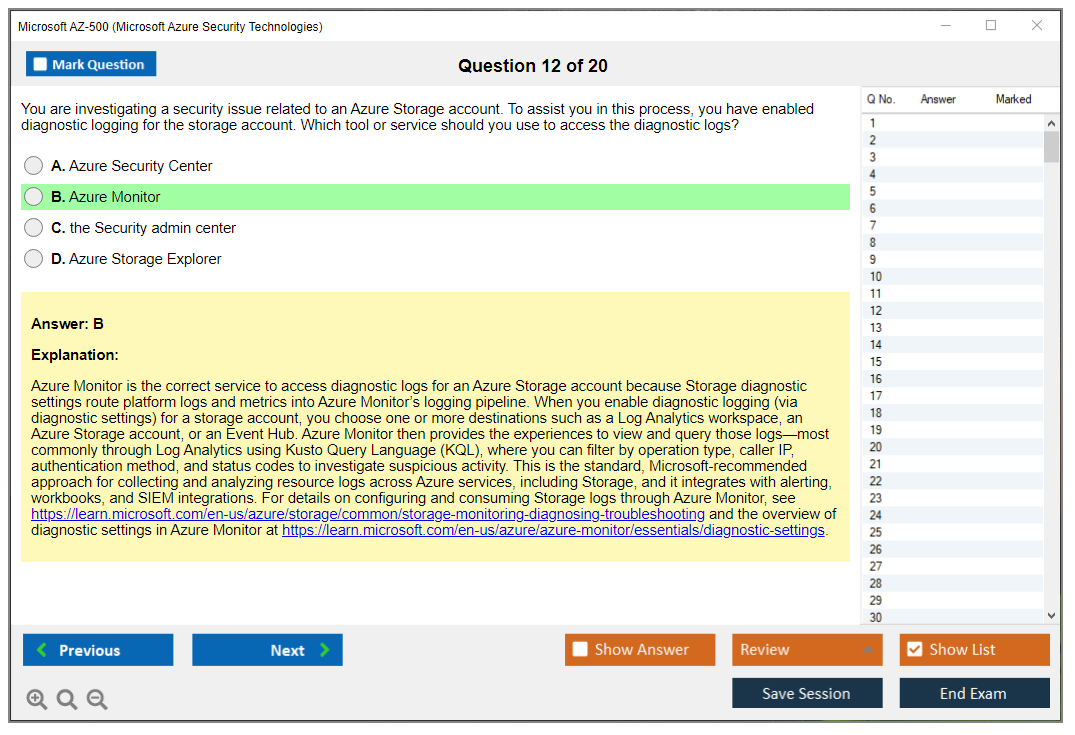 Our AZ-500 Testing Engine will Save your AZ-500 Exam Score so you can Review it later to improve your results.