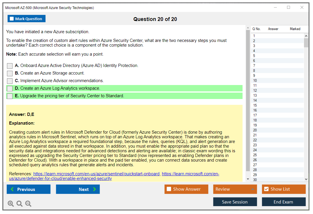 - Correct AZ-500 Answers verified by Microsoft Experts
