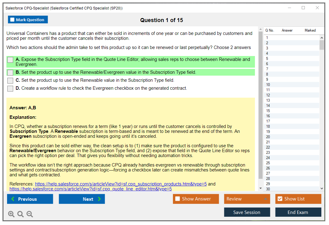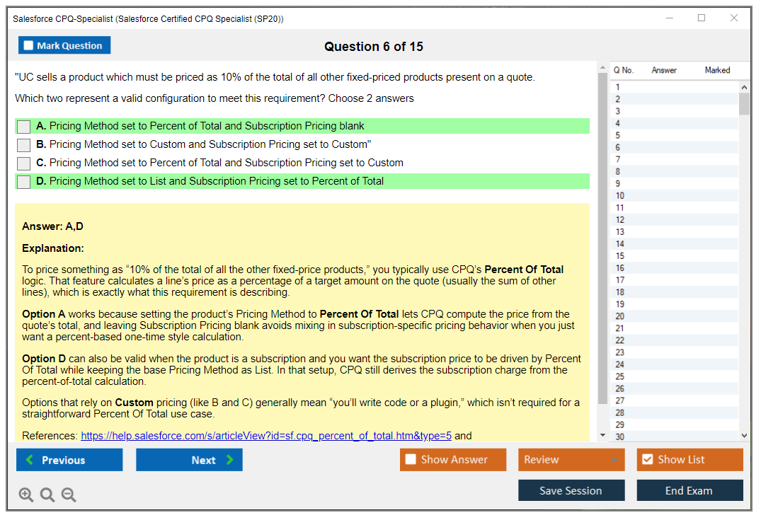 - Correct CPQ-Specialist Answers verified by Salesforce Experts
